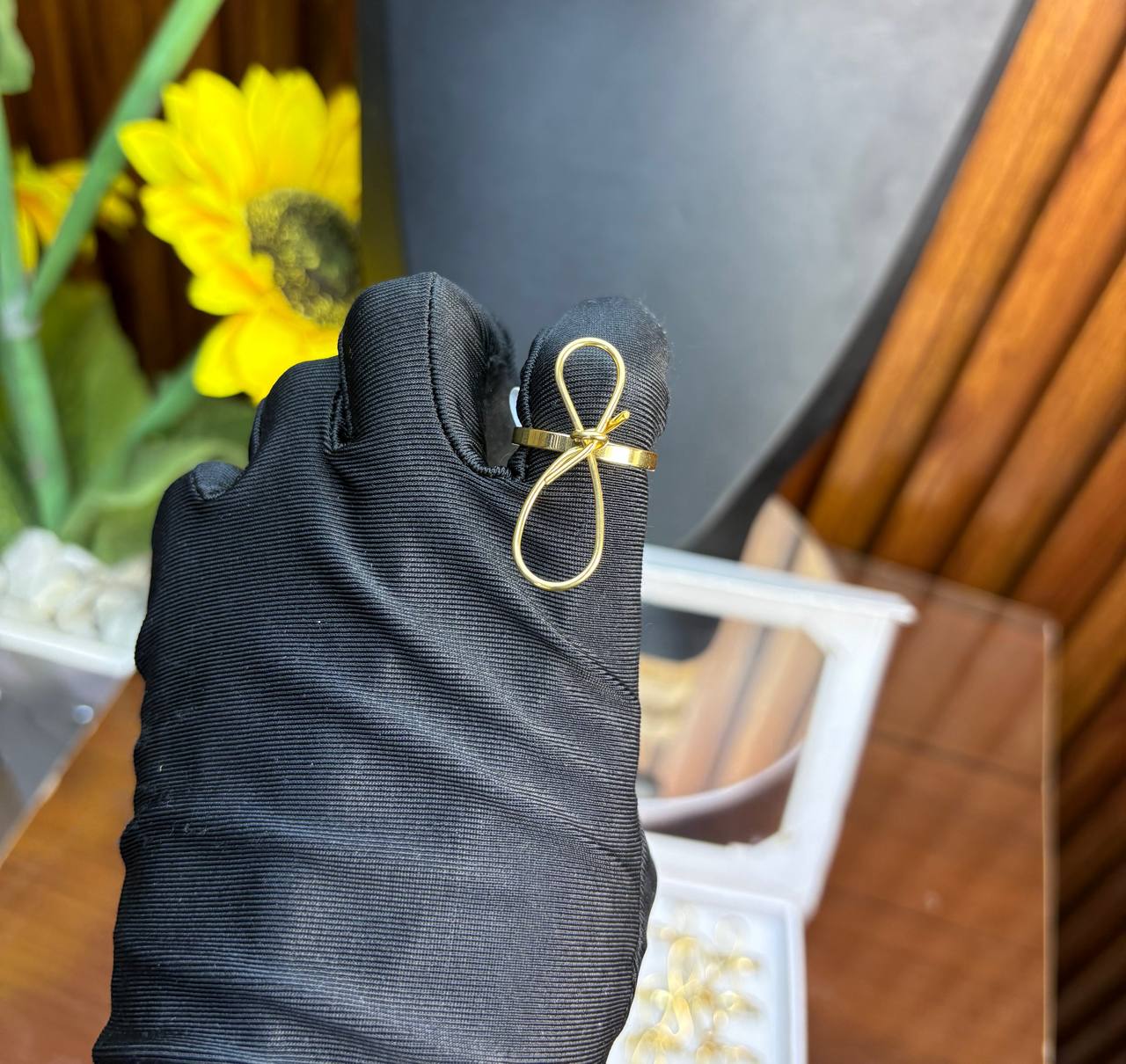 UNISEX STEEL RING SR05 (BLACK/GOLD STRAP )